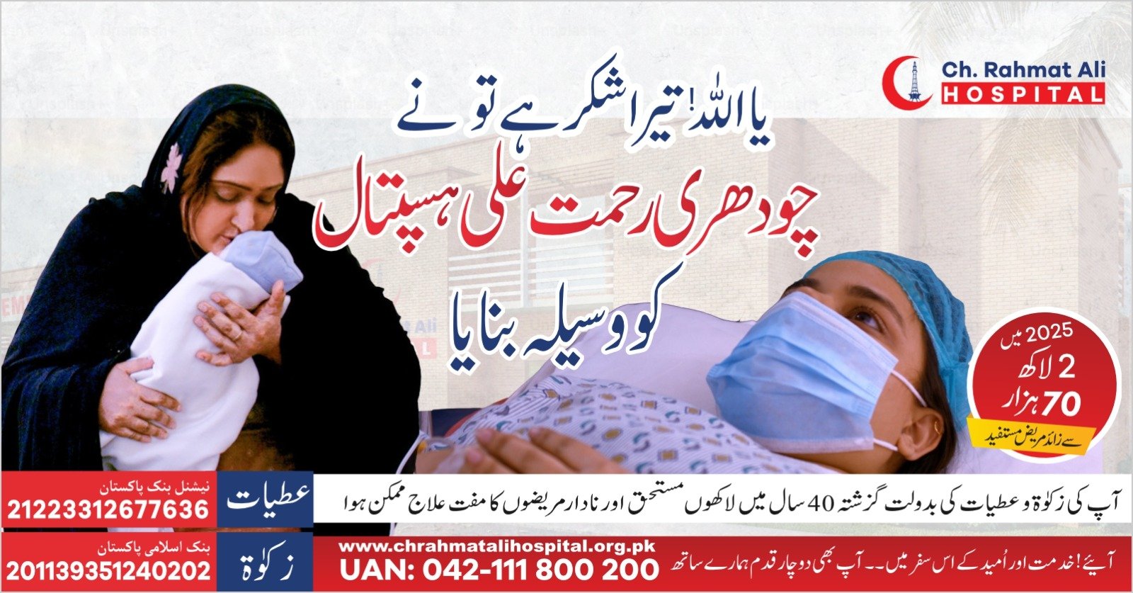Many supporters consider Ch. Rahmat Ali Hospital is a trusted place to give Zakat for medical help in Lahore.